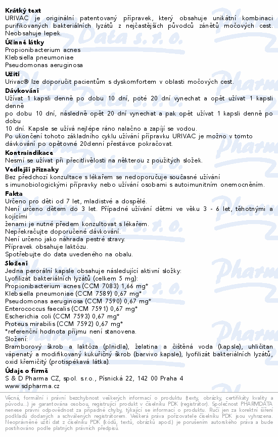 URIVAC je originální patentovaný přípravek, který obsahuje unikátní kombinaci purifikovaných bakteriálních lyzátů z nejčastějších původců zánětů močových cest. Neobsahuje lepek.