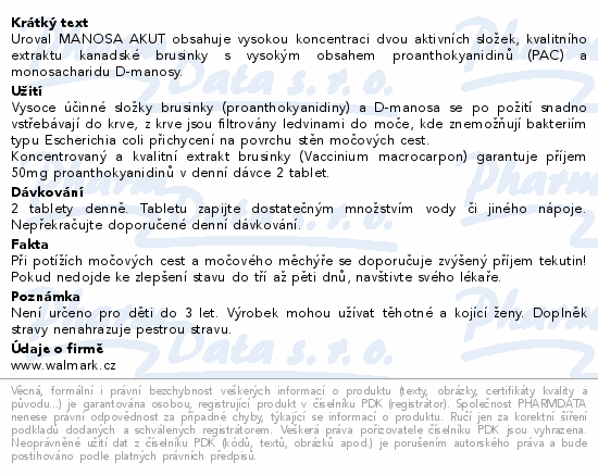 Uroval Manosa AKUT je určen pro akutní péči o močové cesty. Není určeno pro děti do 3 let. Vhodný pro těhotné a kojící ženy.