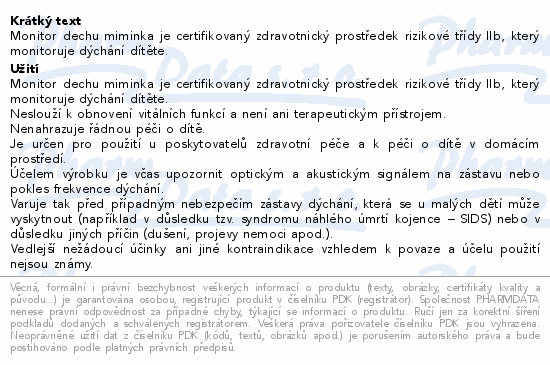 Monitor dechu miminka je certifikovaný zdravotnický prostředek rizikové třídy IIb, který monitoruje dýchání dítěte.