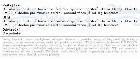 Unikátní produkt od tradičního českého výrobce monitorů dechu Nanny. Novinka BM-03 je vhodná pro miminka s nízkou porodní váhou již od 1kg hmotnosti.