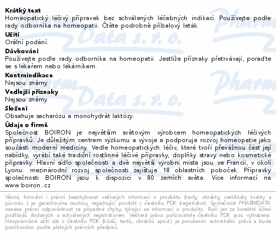 Homeopatický léčivý přípravek bez schválených léčebných indikací. Používejte podle rady odborníka na homeopatii. Čtěte pozorně příbalový leták.