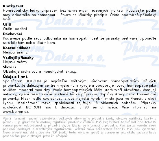 Homeopatický léčivý přípravek bez schválených léčebných indikací. Používejte podle rady odborníka na homeopatii. Pouze na lékařský předpis. Čtěte pozorně příbalový leták.