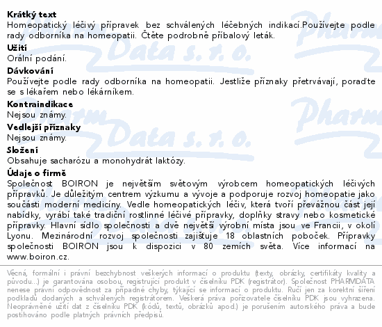 Homeopatický léčivý přípravek bez schválených léčebných indikací.Používejte podle rady odborníka na homeopatii. Čtěte pozorně příbalový leták.