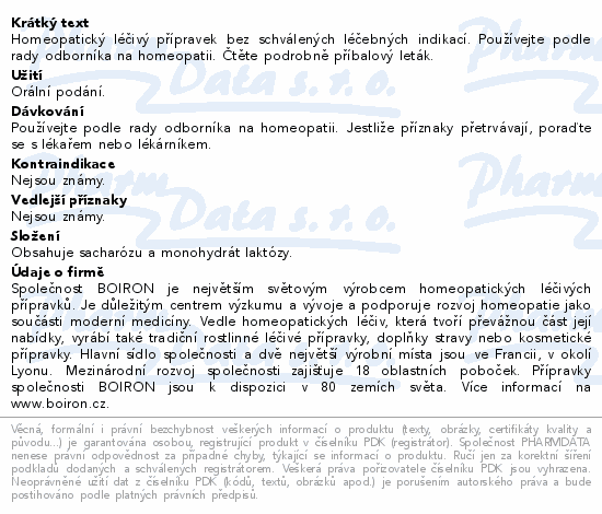 Homeopatický léčivý přípravek bez schválených léčebných indikací. Používejte podle rady odborníka na homeopatii. Čtěte pozorně příbalový leták.