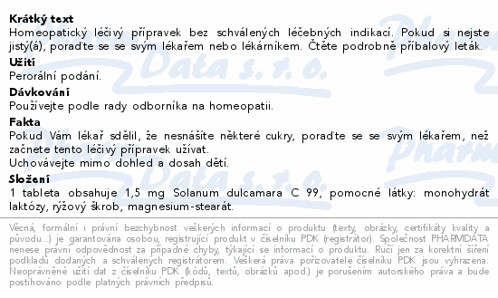 Homeopatický přípravek pro perorální podání. Užívejte dle rady odborníka na homeopatii. Pokud příznaky přetrvávají, navštivte lékaře. Čtěte pozorně příbalový leták.