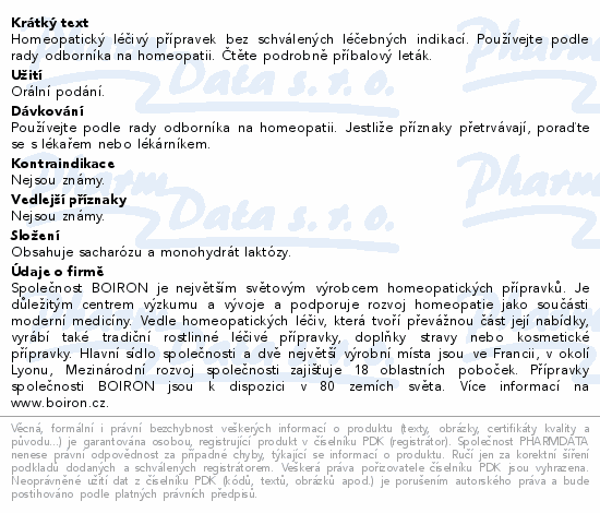 Homeopatický léčivý přípravek bez schválených léčebných indikací. Používejte podle rady odborníka na homeopatii. Čtěte pozorně příbalový leták.