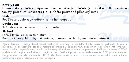 Homeopatický léčivý přípravek bez schválených léčebných indikací. Biochemické tablety podle Dr. Schüsslera No. 1. Čtěte pozorně příbalový leták.