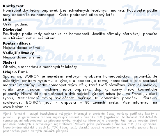 Homeopatický léčivý přípravek bez schválených léčebných indikací. Používejte podle rady odborníka na homeopatii. Čtěte pozorně příbalový leták.