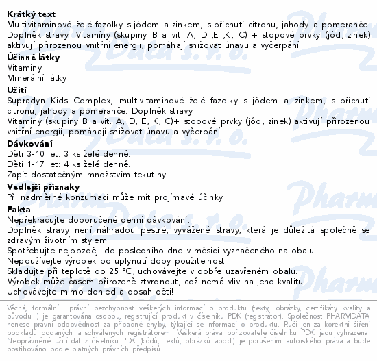 Multivitaminové želé fazolky s jódem a zinkem, s příchutí citronu, jahody a pomeranče. Doplněk stravy. Vitamíny (skupiny B a vit. A, D ,E ,K, C) + stopové prvky (jód, zinek) aktivují přirozenou vnitřní energii, pomáhají snižovat únavu a vyčerpání.