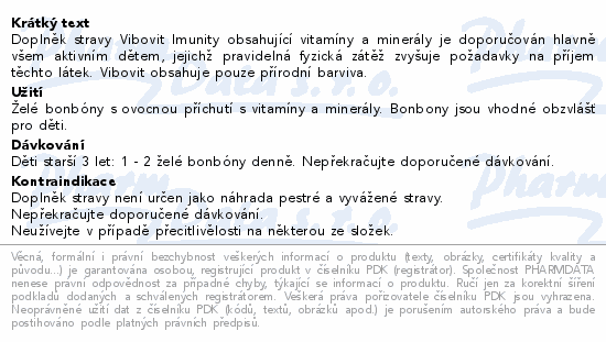 Doplněk stravy Vibovit Imunity obsahující vitamíny a minerály je doporučován hlavně všem aktivním dětem, jejichž pravidelná fyzická zátěž zvyšuje požadavky na příjem těchto látek. Vibovit obsahuje pouze přírodní barviva.