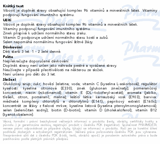 Vibovit je doplněk stravy obsahující komplex 9ti vitamínů a minerálních látek. Vitamíny podporují fungování imunitního systému.
