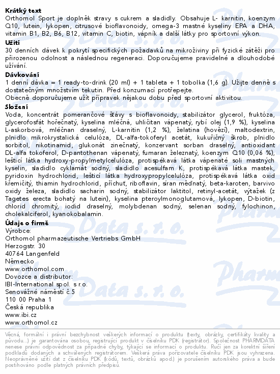 Orthomol Sport je doplněk stravy obsahující důležité mikronutrienty pro sportovní výkon. Obsahuje hořčík přispívající k normálnímu energetickému metabolismu a funkci svalů. Také obsahuje L-karnitin, koenzym Q10 a omega-3-mastné kyseliny.