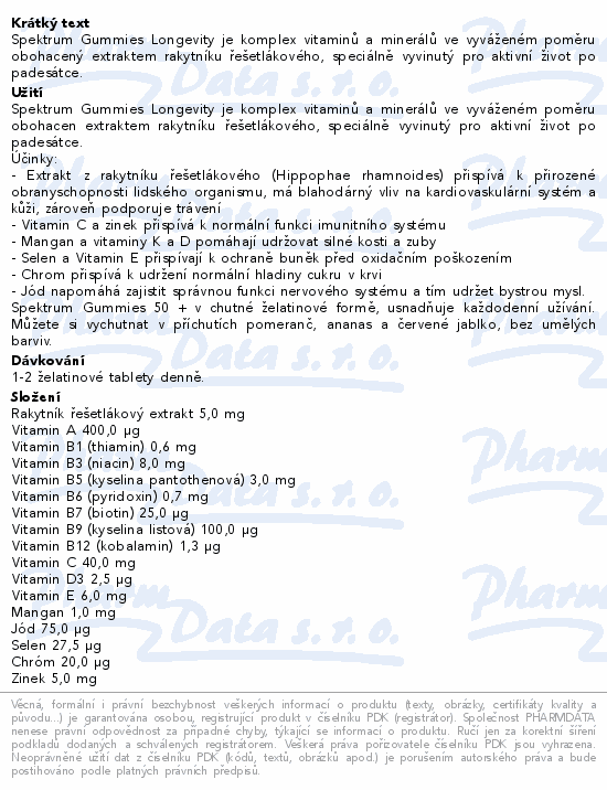 Spektrum Gummies Longevity je komplex vitaminů a minerálů ve vyváženém poměru obohacený extraktem rakytníku řešetlákového, speciálně vyvinutý pro aktivní život po padesátce.