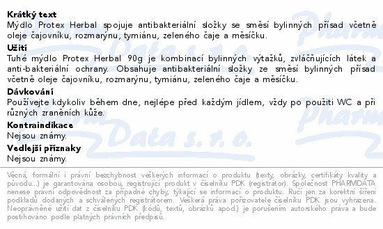 Mýdlo Protex Herbal spojuje antibakteriální složky se směsí bylinných přísad včetně oleje čajovníku, rozmarýnu, tymiánu, zeleného čaje a měsíčku.