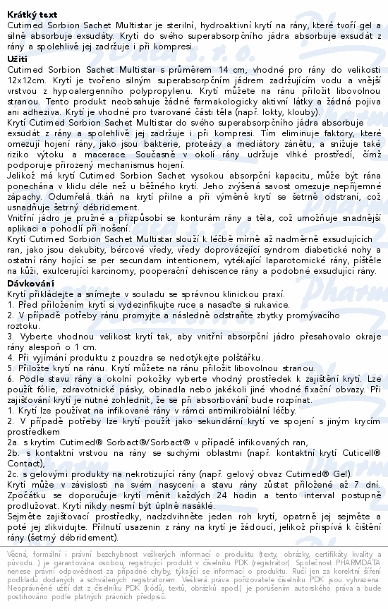 Cutimed Sorbion Sachet Multistar je sterilní, hydroaktivní krytí na rány, které tvoří gel a silně absorbuje exsudáty. Krytí do svého superabsorpčního jádra absorbuje exsudát z rány a spolehlivě jej zadržuje i při kompresi.