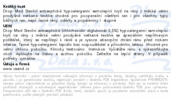 Drop Med Sterilní antiseptické hypoalergenní samolepící krytí na rány z měkké velmi prodyšné netkané textilie vhodné pro pooperační ošetření ran i pro všechny typy běžných ran, např. řezné rány, oděrky a popáleniny I. stupně.