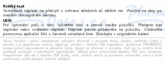 Vodotěsné náplasti na překrytí o ochranu středních až větších ran. Vhodné na rány po menším chirurgickém zákroku.