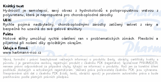 Hydrocoll je samolepicí, savý obvaz z hydrokoloidů s polopropustnou vrstvou z polyuretanu, která je nepropustná pro choroboplodné zárodky.