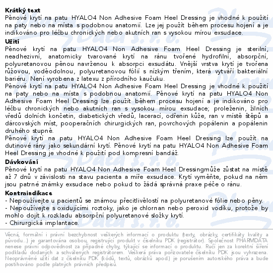 Pěnové krytí na patu HYALO4 Non Adhesive Foam Heel Dressing je vhodné k použití na paty nebo na místa s podobnou anatomií. Lze jej použít během procesu hojení a je indikováno pro léčbu chronických nebo akutních ran s vysokou mírou exsudace.