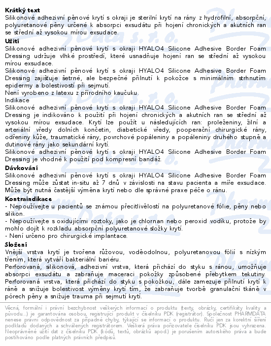 Silikonové adhezivní pěnové krytí s okraji je sterilní krytí na rány z hydrofilní, absorpční, polyuretanové pěny určené k absorpci exsudátu při hojení chronických a akutních ran se střední až vysokou mírou exsudace.
