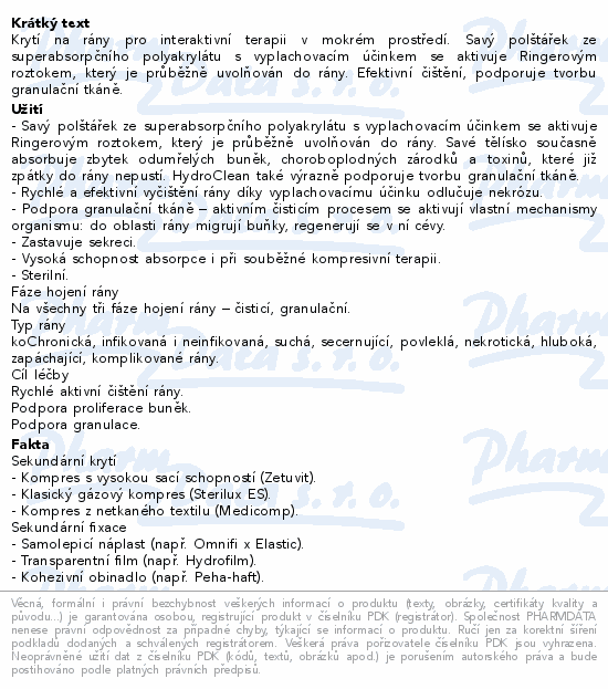 Krytí na rány pro interaktivní terapii v mokrém prostředí. Savý polštářek ze superabsorpčního polyakrylátu s vyplachovacím účinkem se aktivuje Ringerovým roztokem, který je průběžně uvolňován do rány. Efektivní čištění, podporuje tvorbu granulační tkáně.