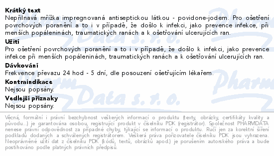 Nepřilnavá mřížka impregnovaná antiseptickou látkou - povidone-jodem. Pro ošetření povrchových poranění a to i v případě, že došlo k infekci, jako prevence infekce, při menších popáleninách, traumatických ranách a k ošetřování ulcerujících ran.
