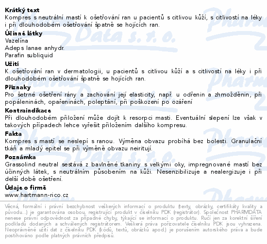 Kompres s neutrální mastí k ošetřování ran u pacientů s citlivou kůží, s citlivostí na léky i při dlouhodobém ošetřování špatně se hojících ran.