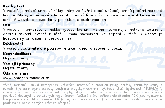 Vliwasoft je měkké univerzální krytí rány ze čtyřnásobně složené, jemně porézní netkané textilie. Má výborné savé schopnosti, nedráždí pokožku - malá náchylnost ke slepení k ráně. Vliwasoft je hospodárný při čištění a ošetřování ran.