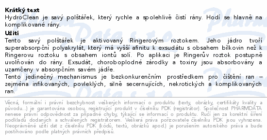 HydroClean je savý polštářek, který rychle a spolehlivě čistí rány. Hodí se hlavně na komplikované rány.