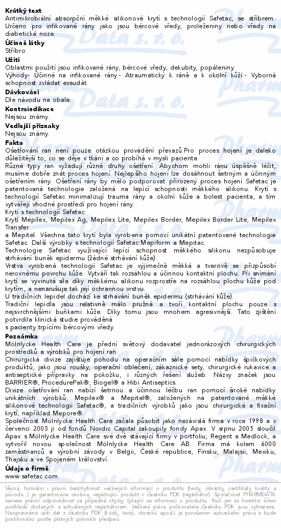 Antimikrobiální absorpční měkké silikonové krytí s technologií Safetac, se stříbrem. Určeno pro infikované rány jako jsou bércové vředy, proleženiny nebo vředy na diabetické noze.