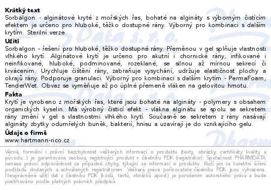 Sorbalgon - alginátové kryté z mořských řas, bohaté na algináty s výborným čistícím efektem je určeno pro hluboké, těžko dostupné rány. Výborný pro kombinaci s dalším krytím. Sterilní verze.