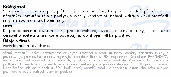 Suprasorb F je samolepicí, průhledný obvaz na rány, který se flexibilně přizpůsobuje náročným konturám těla a poskytuje vysoký komfort při nošení. Udržuje vlhké prostředí rány a napomáhá tak hojení rány.