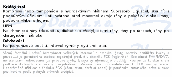 Komprese nebo tamponáda s hydroaktivním vláknem Suprasorb Liquacel, sterilní: s podpůrným účinkem i při ochraně před macerací okraje rány a pokožky v okolí rány, podpora vlhkého hojení.