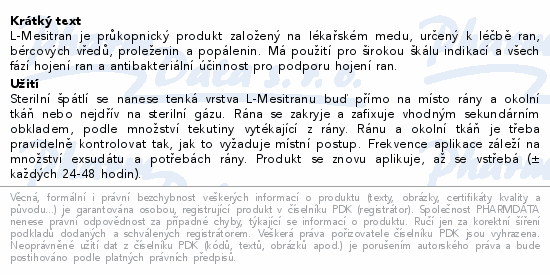 L-Mesitran je průkopnický produkt založený na lékařském medu, určený k léčbě ran, bércových vředů, proleženin a popálenin. Má použití pro širokou škálu indikací a všech fází hojení ran a antibakteriální účinnost pro podporu hojení ran.