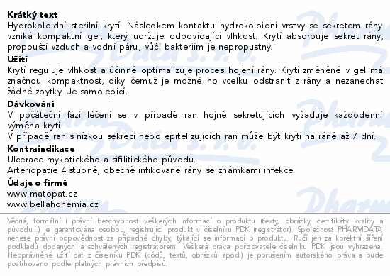 Hydrokoloidní sterilní krytí. Následkem kontaktu hydrokoloidní vrstvy se sekretem rány vzniká kompaktní gel, který udržuje odpovídající vlhkost. Krytí absorbuje sekret rány, propouští vzduch a vodní páru, vůči bakteriím je nepropustný.