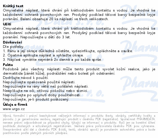 URGO AQUA PROTECT Omyvatelná náplast 20ks NOVÁ