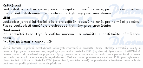 Leukoplast je tradiční fixační páska pro zajištění obvazů na ráně, pro normální pokožku. Fixace Leukoplastí umožňuje dlouhodobé krytí rány před znečištěním.