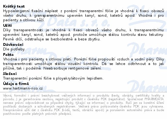 Hypoalergenní fixační náplast z porézní transparentní fólie je vhodná k fixaci obvazů všeho druhu, k gransparentnímu upevněn kanyl, sond, katetrů apod. Vhodná i pro pacienty s citlivou kůží.