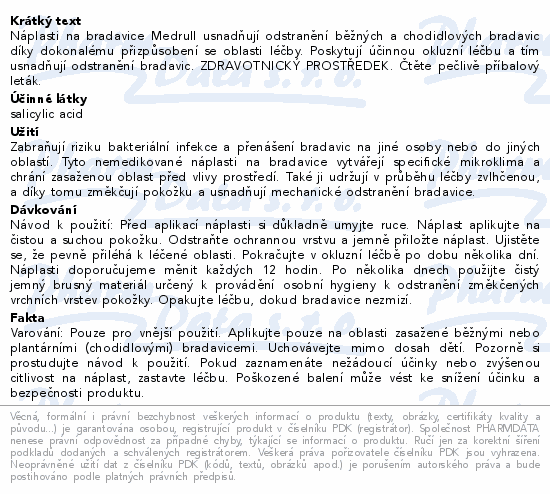 Náplasti na bradavice Medrull usnadňují odstranění běžných a chodidlových bradavic díky dokonalému přizpůsobení se oblasti léčby. Poskytují účinnou okluzní léčbu a tím usnadňují odstranění bradavic. ZDRAVOTNICKÝ PROSTŘEDEK. Čtěte pečlivě příbalový leták.