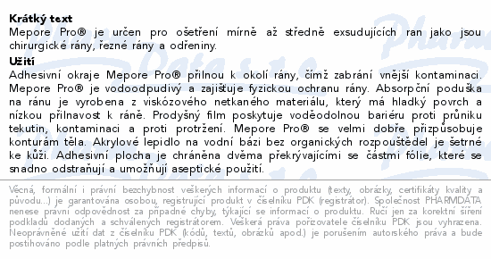 Mepore Pro® je určen pro ošetření mírně až středně exsudujících ran jako jsou chirurgické rány, řezné rány a odřeniny.