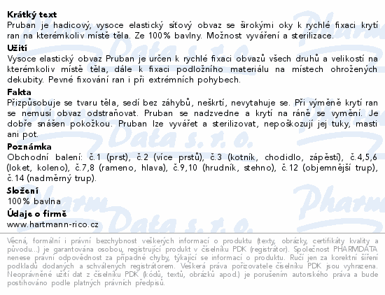 Pruban je hadicový, vysoce elastický síťový obvaz se širokými oky k rychlé fixaci krytí ran na kterémkoliv místě těla. Ze 100% bavlny. Možnost vyváření a sterilizace.