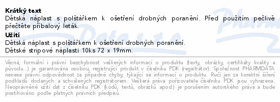 Dětská náplast s polštářkem k ošetření drobných poranění. Před použitím pečlivě přečtěte příbalový leták.