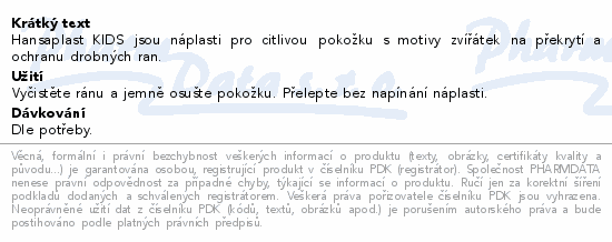 Hansaplast KIDS jsou náplasti pro citlivou pokožku s motivy zvířátek na překrytí a ochranu drobných ran.