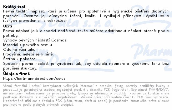 Pevná textilní náplast, která je určena pro spolehlivé a hygienické ošetření drobných poranění. Oceníte její důmyslné řešení, kvalitu i vynikající přilnavost. Vyrábí se v různých provedeních a velikostech.