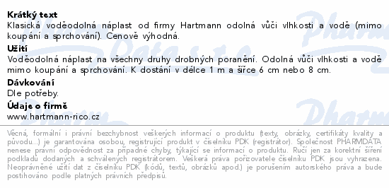 Klasická voděodolná náplast od firmy Hartmann odolná vůči vlhkosti a vodě (mimo koupání a sprchování). Cenově výhodná.