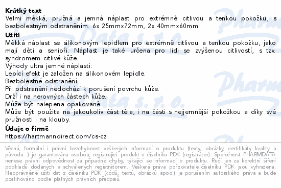 Velmi měkká, pružná a jemná náplast pro extrémně citlivou a tenkou pokožku, s bezbolestným odstraněním. 6x 25mmx72mm, 2x 40mmx60mm.