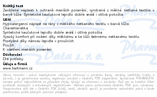 Zaoblené náplasti k ochraně menších poranění, vyrobené z měkké netkané textilie v barvě kůže. Syntetické kaučukové lepidlo dobře snáší i citlivá pokožka.