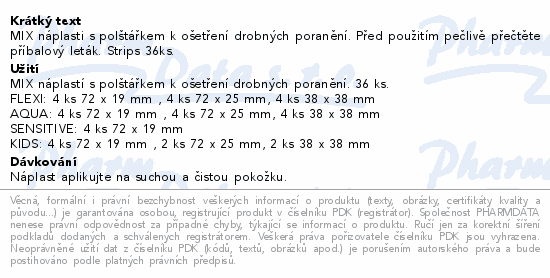 MIX náplasti s polštářkem k ošetření drobných poranění. Před použitím pečlivě přečtěte příbalový leták. Strips 36ks.