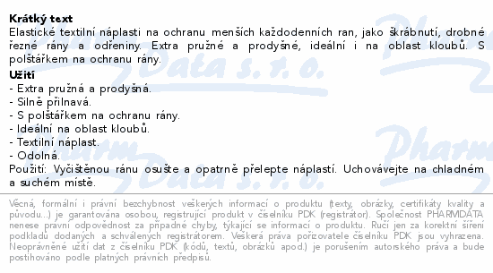 Elastické textilní náplasti na ochranu menších každodenních ran, jako škrábnutí, drobné řezné rány a odřeniny. Extra pružné a prodyšné, ideální i na oblast kloubů. S polštářkem na ochranu rány.