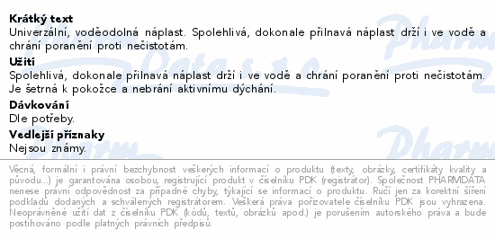 Univerzální, voděodolná náplast. Spolehlivá, dokonale přilnavá náplast drží i ve vodě a chrání poranění proti nečistotám.